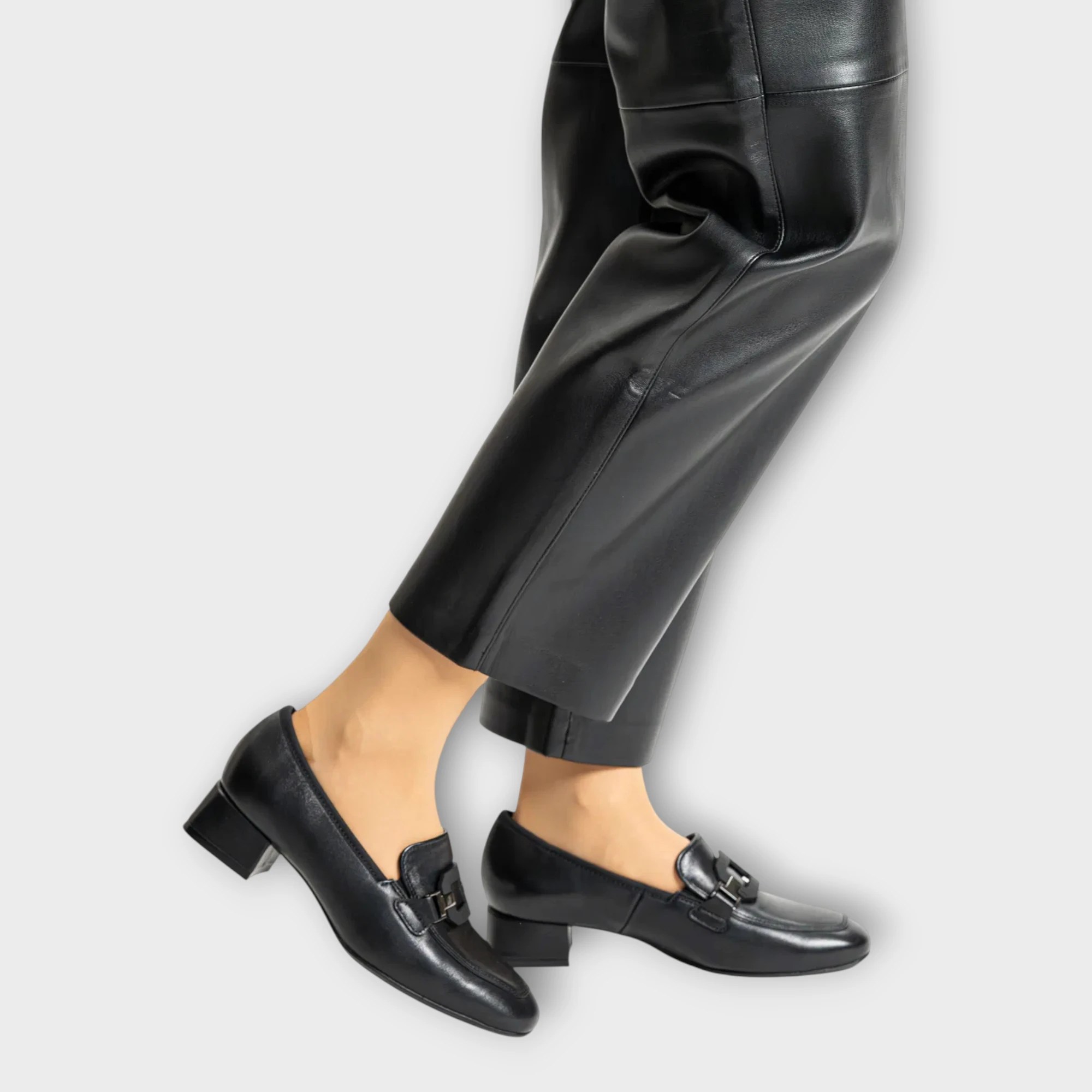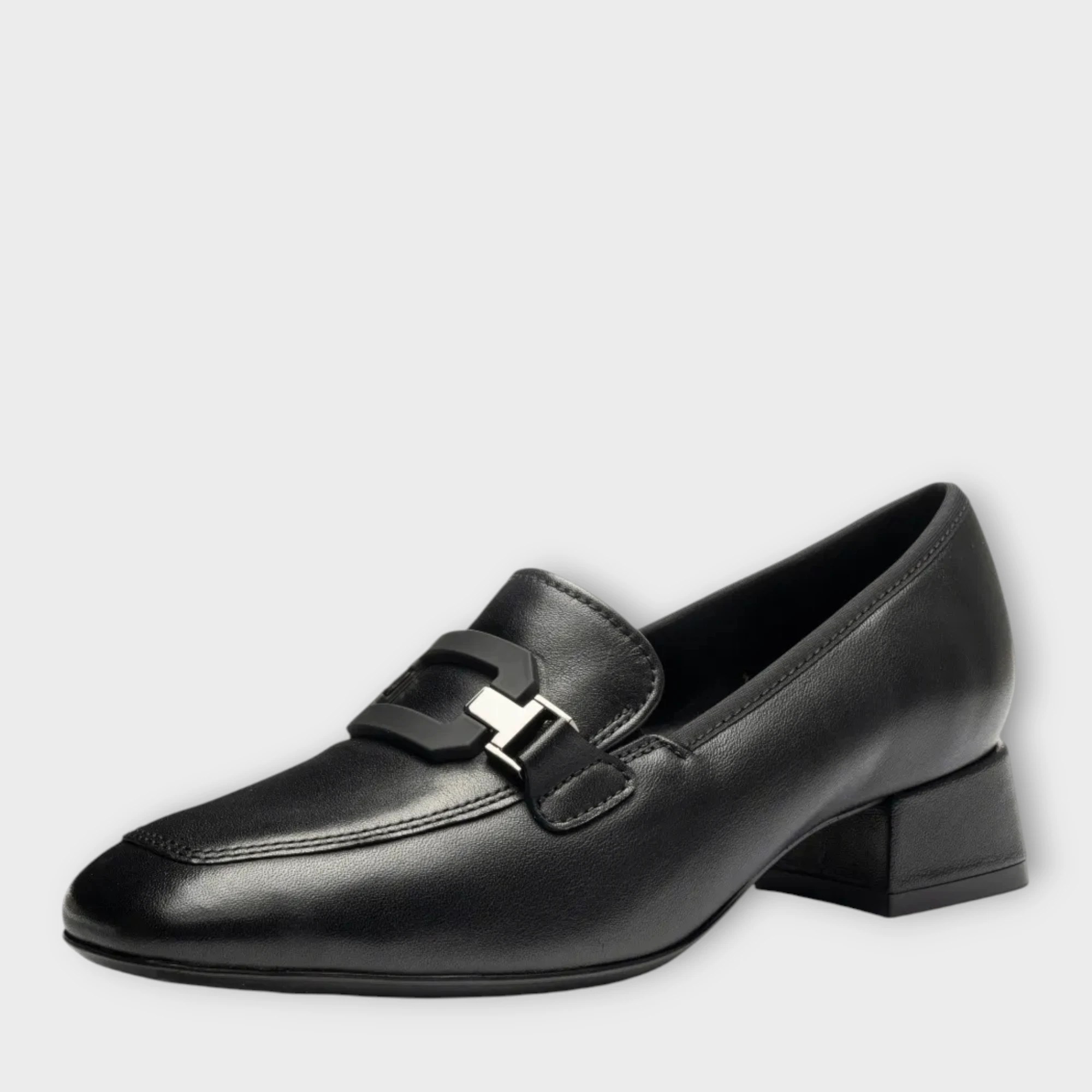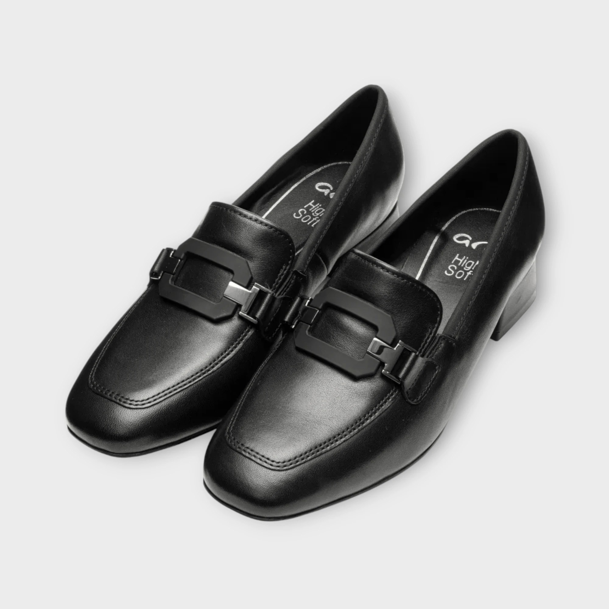 Elegance meets comfort in our feminine trotteur pump with jewellery clasp. The discreetly integrated elasticated straps make them easy to put on and take off and ensure a secure fit. With the block heel and wide tread, the shoe guarantees stability, while the slip-resistant sole ensures a secure step. Thanks to the High Soft technology, a combination of super soft leather and a highly flexible outsole, you can enjoy a perfect fit. The firmly integrated, softly padded footbed and the soft textile lining offer maximum comfort. The fashionable decorative clasp gives this timeless, elegant shoe that certain something. High-quality leather rounds off the overall look, making these court shoes the ideal choice for style-conscious women.