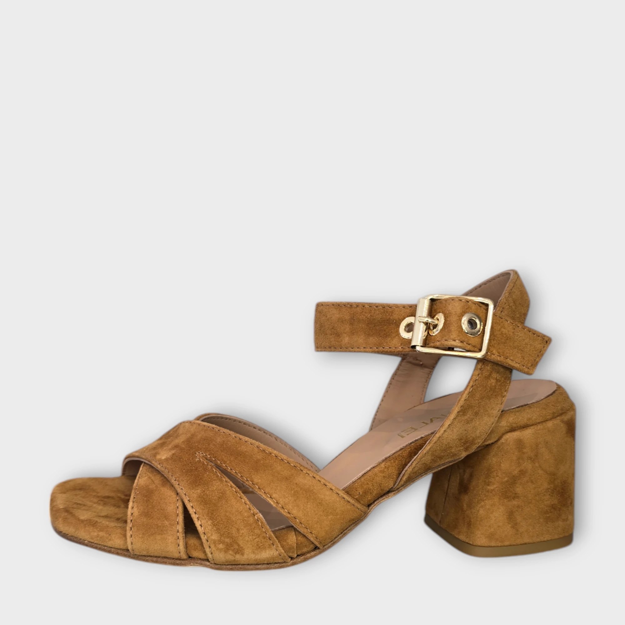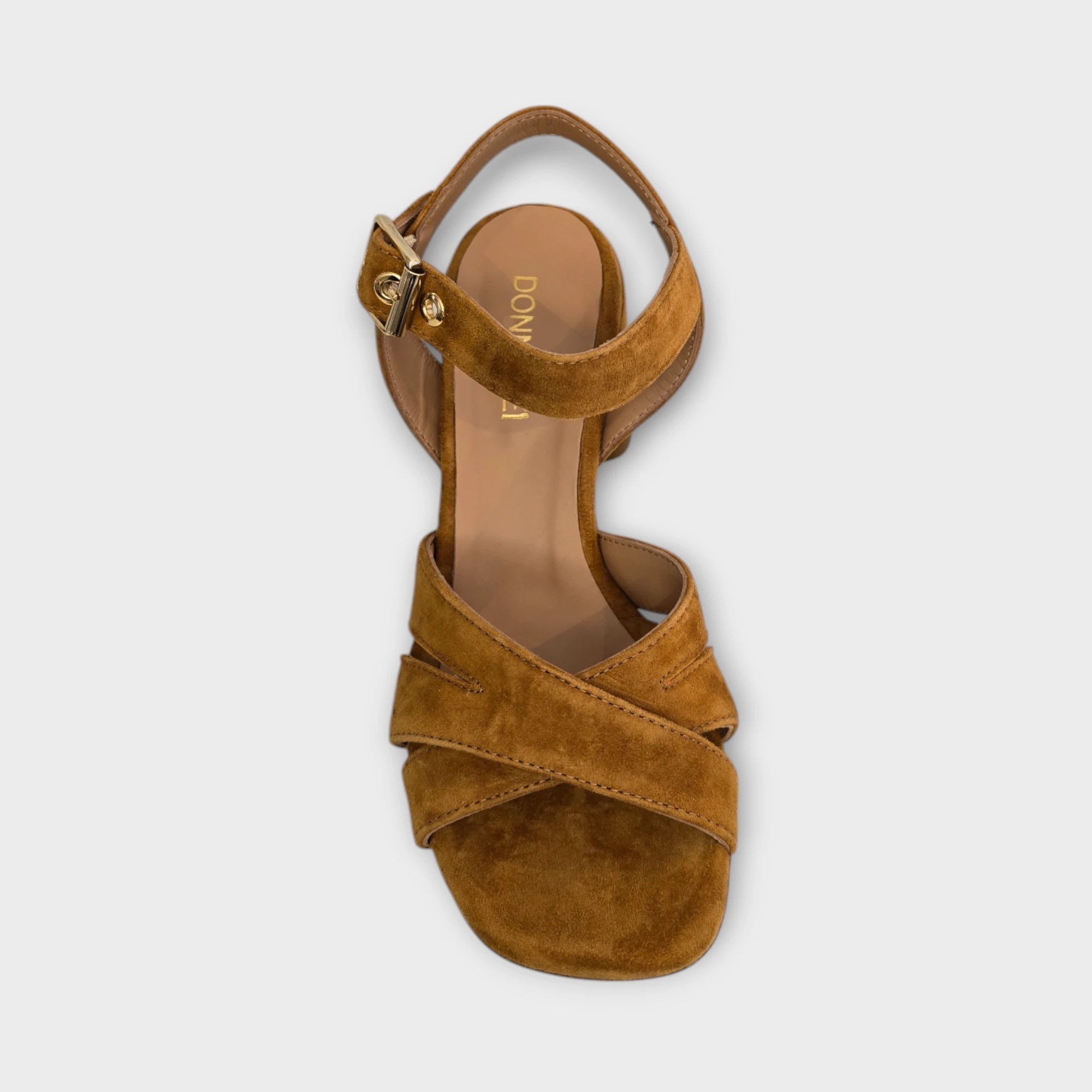 Exude elegance with the these tan sandals from the renowned Italian brand Donna Lei. These stylish sandals feature a comfortable and supportive crossover strap, a secure wide ankle strap, and a contemporary round block heel, combining both comfort and trendiness. The cushioned sole adds extra support for all-day wear, while the gorgeous tan suede straps bring a luxurious touch.