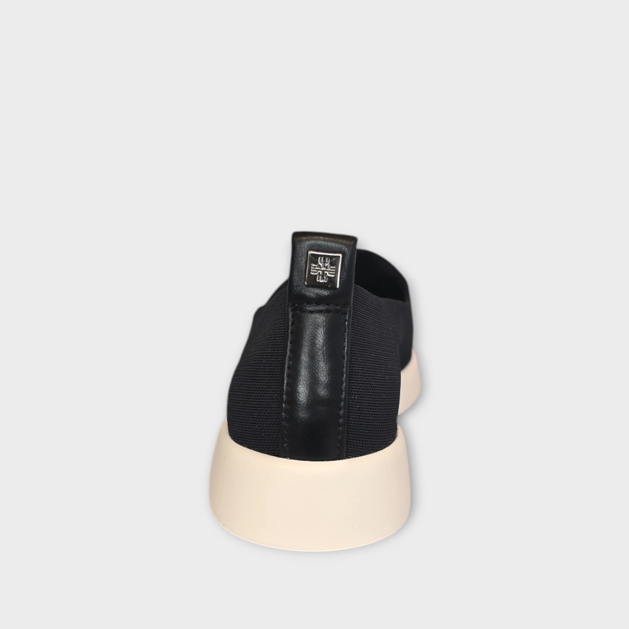 Högl’s black loafers “Chris” from the Butterflight range combine a casual look with outstanding craftsmanship. To achieve this exceptional premium quality, Högl relies on the innovative Sacchetto technique, which requires no rigid components at all. This extremely lightweight construction results in incomparable wear comfort. The emphasised white soles strikingly contrast the black stretch fabric which perfectly fits your feet. The soles impress with a dreamlike cosiness and gentle support for maximum comfort. These modern loafers, one of the world’s most lightweight loafer designs, are a super comfortable and flexible everyday choice – you’ll feel like you’re walking on clouds.