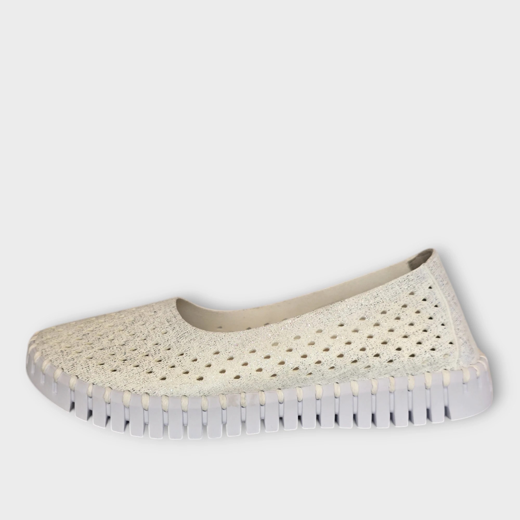Ilse Jacobsen Tulip-78 Leisure Ballerina Shoes (White Microfibre)