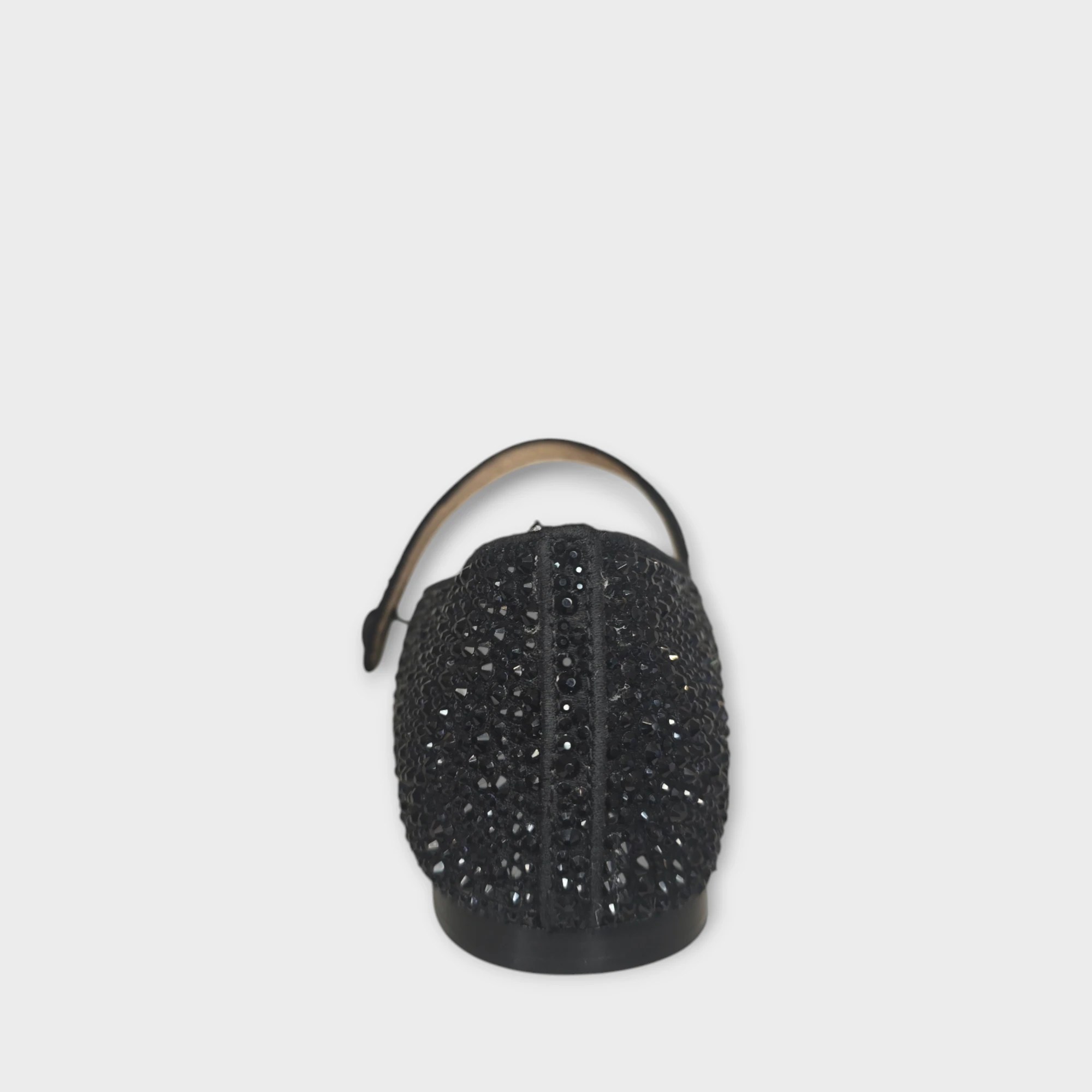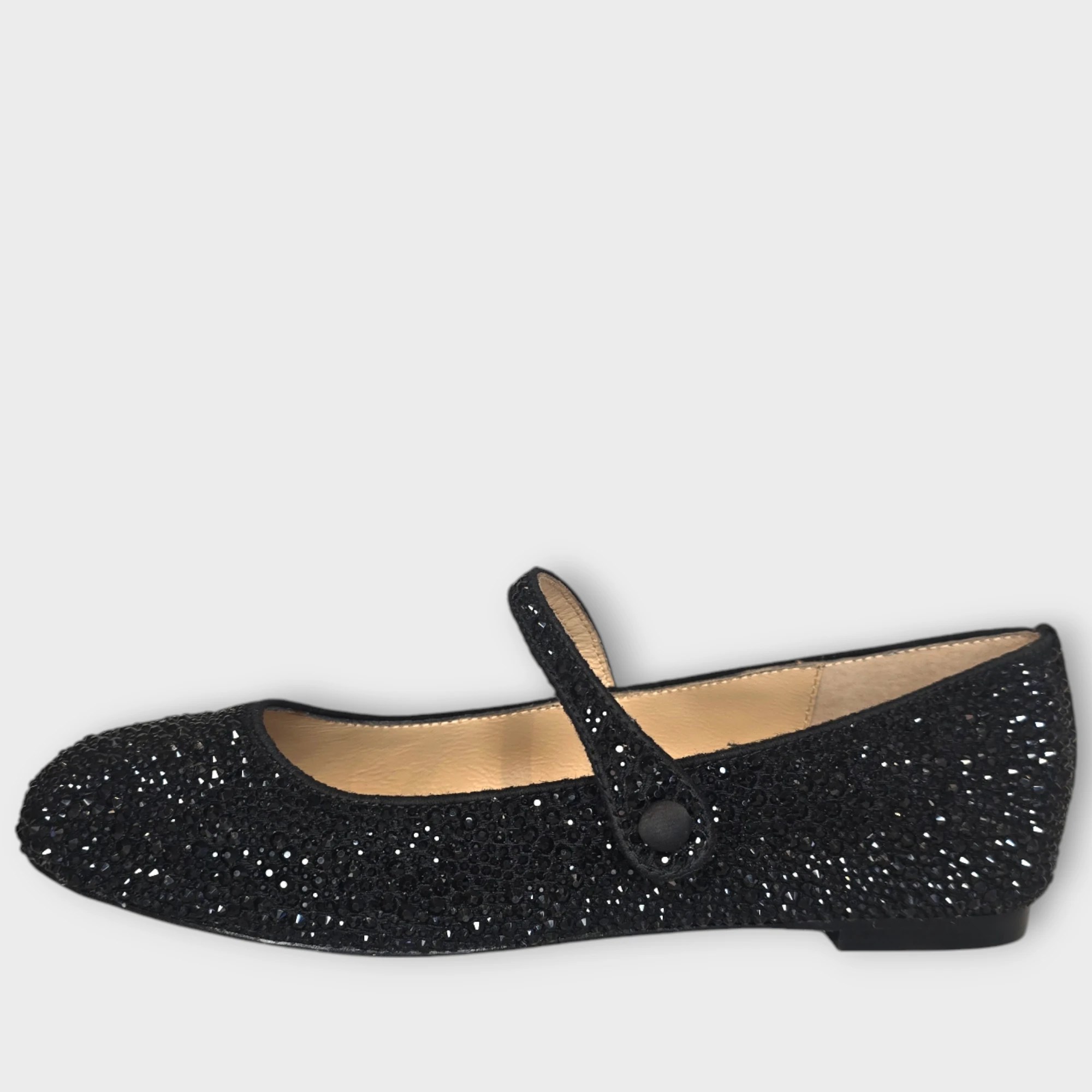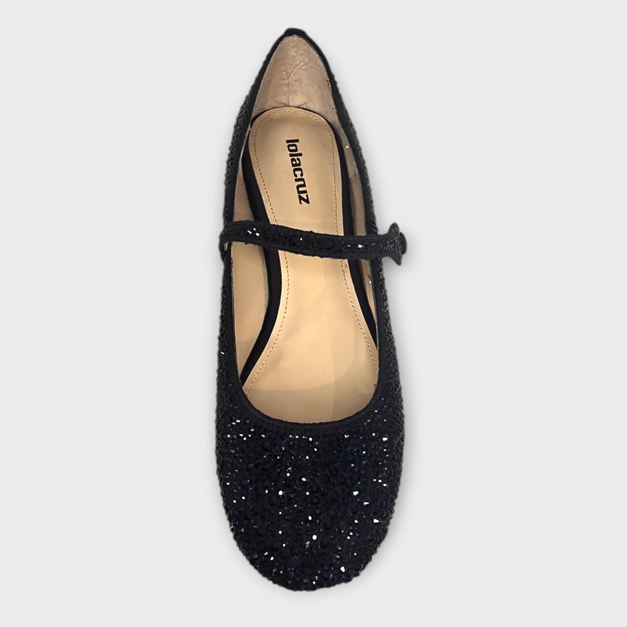 Lola Cruz 114 Ballerina Flats (Black Fabric Rhinestones)