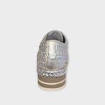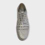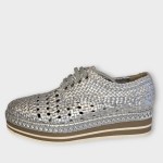 ROLEX 11422 platform shoe made of silver colour hand-braided wet leather. This brogue has a round-toe finish and lace closure.